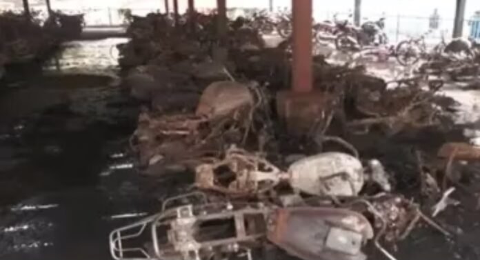 दरअसल, वाराणसी के कैंट रेलवे स्टेशन के पार्किंग एरिया में शनिवार तड़के भीषण आग लग गई। आग लगने से 200 से अधिक दोपहिया वाहन जल गए। खबरों के मुताबिक, जब पार्किंग एरिया में आग लगी तो सूचना पाकर फायर ब्रिगेड और पुलिस विभाग के अधिकारी मौके पर पहुंचे। कड़ी मशक्कत के बाद किसी तरह से आग पर काबू पाया जा सका। इसके बावजूद यहां 200 से अधिक गाड़ियां जलकर राख हो गईं। इससे भारी नुकसान हुआ है। हालांकि किसी के भी हताहत होने की जानकारी सामने नहीं आई है।