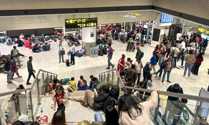 दिल्ली एयरपोर्ट पर इंडिगो की सभी घरेलू फ्लाइट्स आज रात 12 बजे तक रद्द कर दी हैं। गोवा एयरपोर्ट पर एक महिला यात्री ने बताया, ‘हम सुबह 5 बजे से इंतजार कर रहे हैं। एयरपोर्ट आने पर पता चला कि फ्लाइट कैंसिल हो गई है। न कोई मेल आया, न ही मैसेज ।’