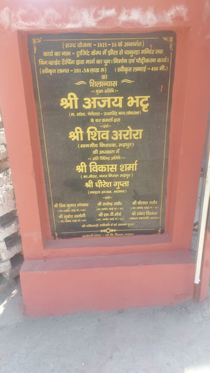 भोंपूराम खबरी,रुद्रपुर (उधम सिंह नगर)। शिव नगर वार्ड नं. 2, चामुंडा देवी मंदिर से ट्रांजिट कैंप रोड तक बनने वाली सड़क निर्माण में गंभीर अनियमितता का मामला सामने आया है। शिकायतकर्ता राकेश अधिकारी द्वारा मुख्यमंत्री हेल्पलाइन में दर्ज शिकायत के अनुसार, विभाग द्वारा 450 मीटर सड़क निर्माण दिखाया गया, जबकि मौके पर केवल लगभग 400 मीटर सड़क ही बनाई गई है।