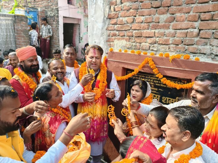 रूद्रपुर। नगर के समग्र विकास को गति देने के संकल्प के साथ महापौर विकास शर्मा ने शुक्रवार को शहर के विभिन्न वार्डों में ताबड़तोड़ शिलान्यास कर करोड़ों रूपये के निर्माण कार्यों की सौगात दी। इस अवसर पर शहरवासियों ने महापौर का जगह-जगह फूलमालाओं से स्वागत कर उत्साहपूर्ण समर्थन जताया। कई स्थानों पर उनके पहुंचने पर “विकास शर्मा जिंदाबाद” और “मुख्यमंत्री पुष्कर सिंह धामी जिंदाबाद” के नारों से माहौल गुंजायमान हो उठा।