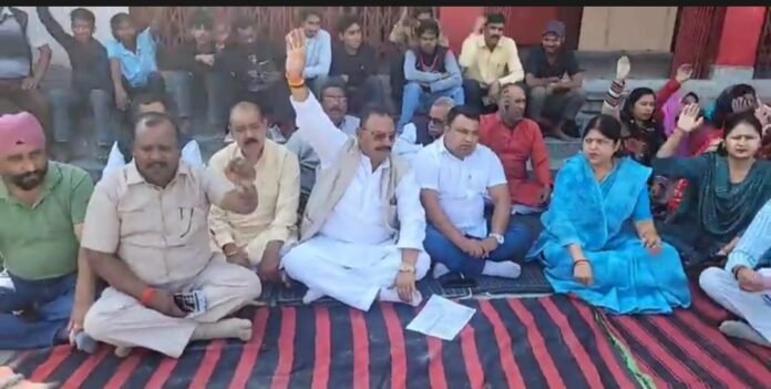 भोंपूराम खबरी। किच्छा रोड रामनगर स्थित दुर्गा मंदिर के एक हिस्से को तोड़े जाने के खिलाफ वरिष्ठ कांग्रेस नेता एवं पूर्व ब्लाक प्रमुख किन्नू शुक्ला गुरूवार को मंदिर परिसर के बाहर आमरण अनशन पर बैठ गये। उन्होनें ऐलान किया कि आमरण अनशन तब तक जारी रहेगा जब तक दुबारा उसी स्थान पर महादेव और काली माता का मंदिर स्थापित नहीं होता। इस दौरान तमाम ग्रामीणों ने किन्नू शुक्ला के साथ एनएचएआई के खिलाफ धरना भी दिया।