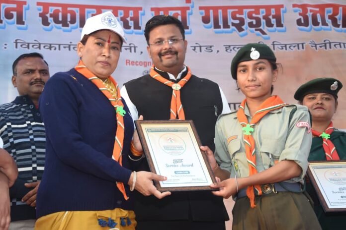 भोंपूराम खबरी,पंतनगर।  कैबिनेट मंत्री रेखा आर्या ने गुरुवार को पंतनगर में कुमाऊं मंडल स्काउट गाइड समागम 2025 कार्यक्रम का समापन किया। इस अवसर पर उन्होंने तीन दिन चले समागम में बेहतर प्रदर्शन करने वाले विजेताओं को मेडल देकर सम्मानित किया।
