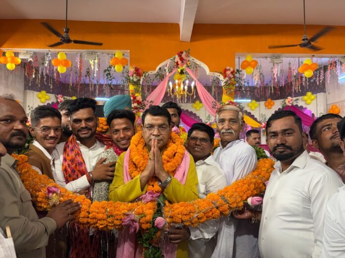 जहाँ कमेटी द्वारा विधायक शिव अरोरा का स्वागत अभिनन्दन किया ओर विधायक अरोरा ने शोभायात्रा का शुभारम्भ फीता काटकर किया।