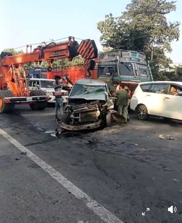 प्राप्त जानकारी के अनुसार रविवार की शाम को लगभग 4 बजे हल्द्वानी निवासी रवि जोशी उम्र 50 वर्ष अपने बेटे को ट्रेन में बैठने के लिए लालकुआं रेलवे स्टेशन कार द्वारा आ रहे थे, इसी दौरान वह जैसे ही वन विकास निगम के डिपो संख्या चार के सामने पहुंचे ही थे कि तभी उनके आगे चल रहे 18 टायरा ट्रक ने अचानक सामने मोटरसाइकिल सवार को बचाने के चक्कर में ब्रेक लगा दिए, और उक्त ट्रक के ठीक पीछे चल रही कार ट्रक के नीचे घुस गई, जिसके चलते कार में सवार रवि जोशी की पत्नी किरन जोशी उम्र 42 वर्ष और पुत्री आज्ञा जोशी उम्र 13 वर्ष गंभीर रूप से जख्मी हो गए, जबकि रवि उम्र 50 वर्ष मामूली रूप से चोटिल हुए। परंतु सौभाग्य से जिस बेटे को ट्रेन में छोड़ने जा रहे थे वह बाल बाल बच गया, जिसे उन्होंने तुरंत ही अन्य वाहन से रेलवे स्टेशन भेज दिया। जबकि मां बेटी को सामुदायिक स्वास्थ्य केंद्र हल्दुचौड़ ले जाया गया, जहां से चिकित्सकों ने मां बेटी की हालत गंभीर होने पर उन्हें हल्द्वानी के निजी अस्पताल को रेफर कर दिया। इधर मौके पर पहुंची पुलिस ने क्रेन की मदद से उक्त कार को हाईवे से हटवा दिया। इस दौरान मामूली रूप से यातायात बाधित रहा।