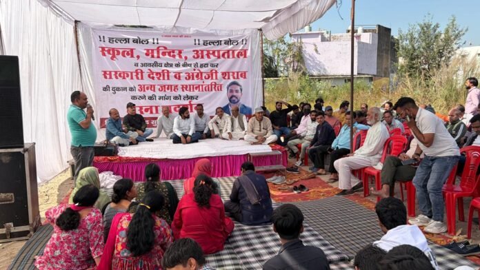 भोंपूराम खबरी। उत्तराखंड जहां आज राज्य स्थापना दिवस पर राजधानी देहरादून के साथ ही प्रदेश भर में भव्य कार्यक्रम आयोजित किए गए तो वहीं हरिद्वार कनखल थाना क्षेत्र शराब के ठेकों को हटाए जाने को लेकर स्थानीय लोगों ने अनशन कर जमकर विरोध किया गया। वहीं जगजीतपुर पार्षद सुमित त्यागी ने बताया कि कनखल थाना क्षेत्र जगजीतपुर में लक्सर रोड पर शराब की दुकानें हैं जहां आस पास स्कूल, मन्दिर हॉस्पिटल हैं जिससे स्थानीय लोगों के साथ ही मंदिर स्कूल हॉस्पिटल आने जाने वाले लोगों के लिए बड़ी दिक्कत रहती है। वहीं मेन रोड पर शराब की दुकान के कारण स्कूल के बच्चों पर भी गलत प्रभाव पड़ रहा है। तो वहीं शाम के समय बाजार जाने वाली आस पास की महिलाओं को भी दिक्कत का सामना करना पड़ता है। अनशन पर बैठे लोगों द्वारा शराब की दुकानों को हटाए जाने का विरोध करते हुए जिला प्रशाशन से मांग की गई कि अंग्रेजी शराब व देशी शराब के ठेकों को स्कूल, मंदिर हॉस्पिटल व आबादी क्षेत्र से दूर स्थानांतरित करना चाहिए। जिससे जगजीतपुर क्षेत्र में शान्ति व्यवस्था बनी रहे। अनशन पर बैठे लोगों में एडवोकेट सुमित त्यागी पार्षद जगजीतपुर, अभिषेक भाटी, सागर सैनी, एडवोकेट सौरभ सिंह ,आशीष चौधरी , बादल त्यागी, केतन त्यागी ,जगदीश पाल ,राहुल सैनी , भूपेंद्र चौधरी ,अरविंद शर्मा ,श्रीकांत, राजन, विकास ,विकास राजपूत ,विवेक चौहान ,राजीव सैनी , उमराव, मानसी, गोपाल, दिलीप गुप्ता,पार्षद विक्की भूषण, पार्षद हिमांशु गुप्ता, पार्षद पुनीत कुमार, पार्षद इदरीश मंसूरी जी, पार्षद सोहित सेठी आदि शामिल रहे।