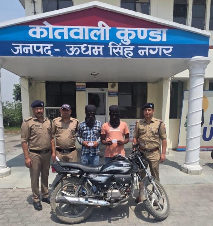 ➡️ श्रीमान वरिष्ठ पुलिस अधीक्षक ऊधमसिंहनगर श्री अजय गणपति के निर्देशानुसार जनपद में अपराध एवं अपराधियों के विरुद्ध चलाए जा रहे “ऑपरेशन प्रहार” के अंतर्गत कोतवाली कुंडा पुलिस द्वारा नशा तस्करों के विरुद्ध सघन चेकिंग अभियान चलाया गया। आज दिनांक 17/04/2026 को चेकिंग के दौरान ठाकुरद्वारा बॉर्डर पर पुलिस टीम ने दो शातिर नशा तस्करों को गिरफ्तार किया।
