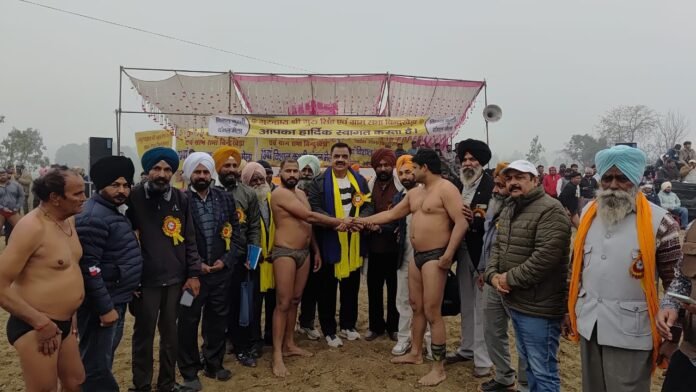 भोंपूराम खबरी,रुद्रपुर । मकर संक्रांति के पावन अवसर पर ग्राम बिंदुखेड़ा में 74वें विशाल कुश्ती दंगल का भव्य आयोजन किया गया। इस पारंपरिक खेल उत्सव का शुभारंभ मुख्य अतिथि पूर्व विधायक राजकुमार ठुकराल ने अखाड़े में उतरकर पहलवानों से परिचय प्राप्त कर और उनका हाथ मिलवाकर किया। वर्षों से चली आ रही इस परंपरा को देखने के लिए आस-पास के दर्जनों गांवों से भारी संख्या में खेल प्रेमी उमड़े।