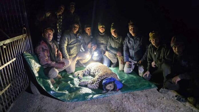 शुक्रवार देर रात गश्त के दौरान वन विभाग की टीम को आदमखोर गांव के निकट घूमता दिखाई दिया। टिम ने सावधानी से गुलदार को ट्रेंकुलाइज किया।