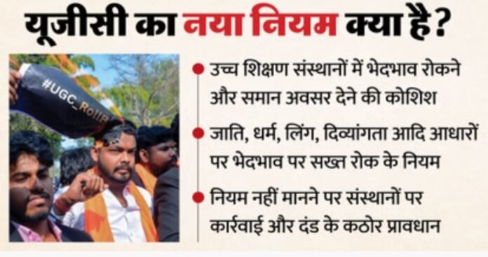 भोंपूराम खबरी। यूजीसी यानी विश्वविद्यालय अनुदान आयोग जिसकी मान्यता की जरूरत हर एक विश्वविद्यालय को पड़ती है। यह उच्च शिक्षा को नियंत्रण करने वाला प्रधिकरण है। यही यूजीसी इस समय विवादों में फंसती हुई नजर आ रही है। इसकी वजह है यूजीसी की तरफ से लाया गया एक नियम “यूजीसी समता विनियम 2026”। इसके जरिए उच्च शिक्षण संस्थानों में जाति अधारित भेदाभाव को खत्म करना है। रोहित वेमुला और पायल तड़वी की कथित जातिगत भेदभाव के कारण हुए हत्या के बाद सुप्रीम कोर्ट ने यूजीसी को ऐसे मामलों से निपटने के लिए नियम बनाने के आदेश दिए थे। 13 जनवरी 2026 को यूजीसी उच्च शिक्षण संस्थानों के लिए ‘समता विनियम 2026’ लेकर आई। इसमें समान्य वर्ग के लोगों द्वारा एससी, एसटी, ओबीसी के साथ जातिगत भेदभाव करने पर कड़े प्रवाधान बनाए गए हैं। सुप्रीम कोर्ट के निर्देश पर बने नियम का विरोध सड़कों पर हो रहा है।